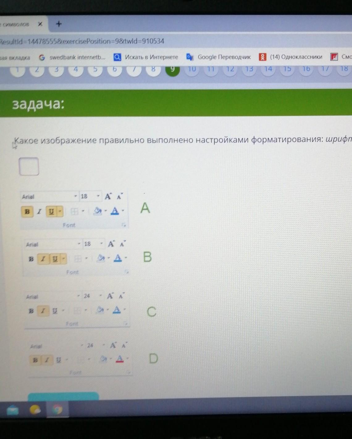 А дальше нужно смотреть, если в варианте D буква жирная, то это тот вариант. Если нет, тогда вариант С.