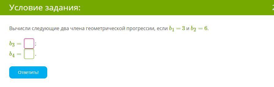 b_{1}=3\\b_{2}=6\\b_{2}=b_{1}*q\\q=frac{b_{2} }{b_{1}}=frac{6}{3}=2\\b_{3}=b_{2}*q=6*2=12\\b_{4}=b_{3}*q=12*2=24\\Otvet:boxed{b_{3}=12;b_{4}=24}