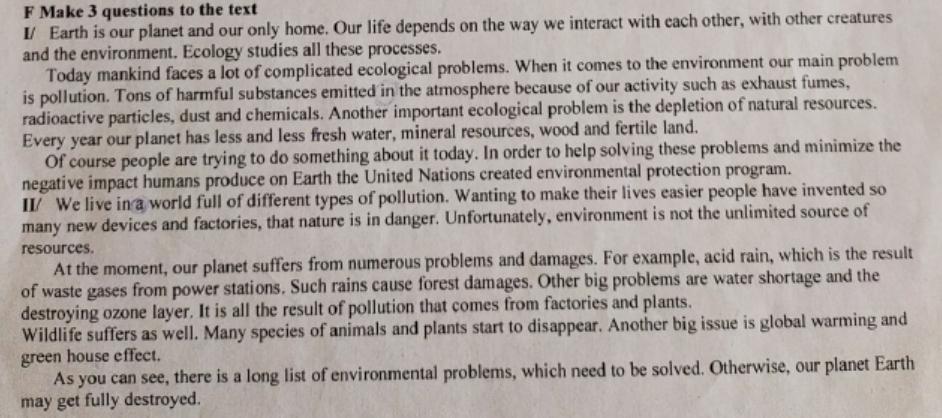 Make 3 questions to the text