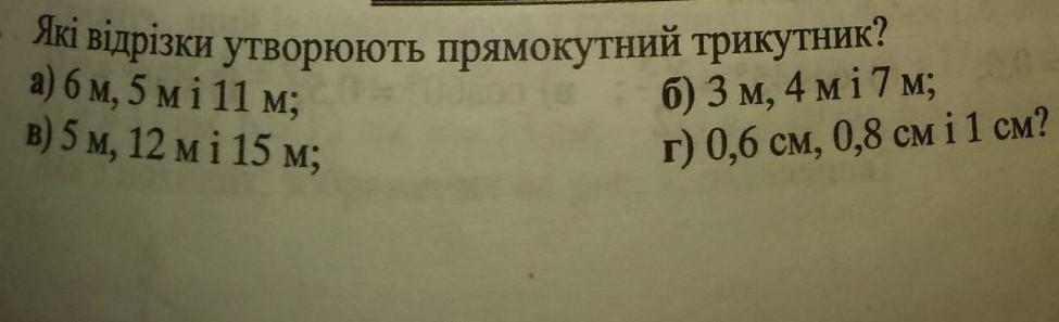Покрокове пояснення: потрібно перевірити т. Піфагора, квадрат двох менших сторін має дорівнювати квадрату однієї більшої сторони.