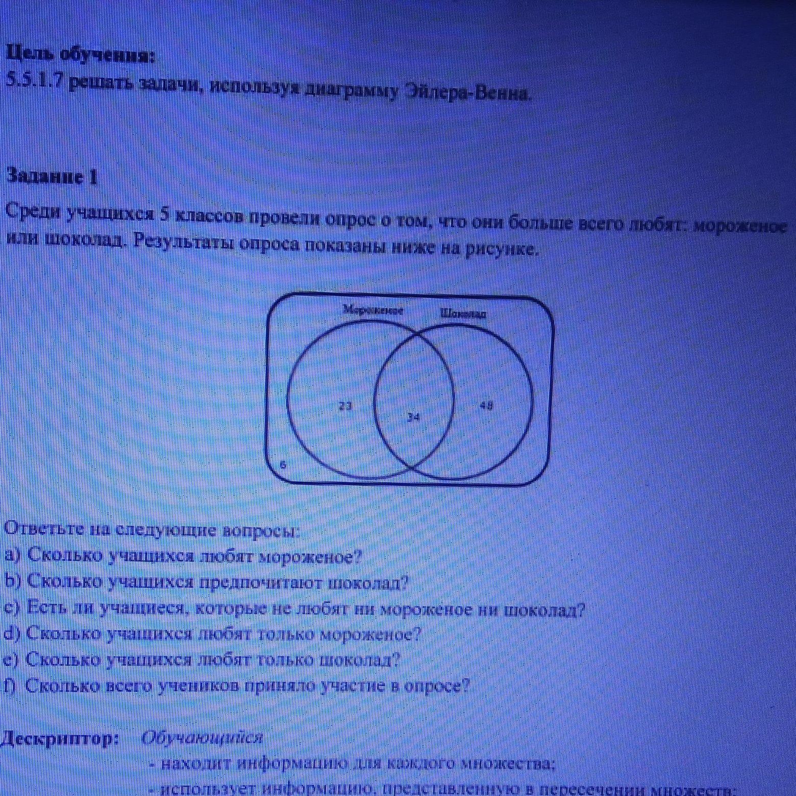 Среди учащихся 5 классов провели опрос,что они больше всего любят: мороженое или шоколад?Результаты опроса показаны ниже на рисунке.