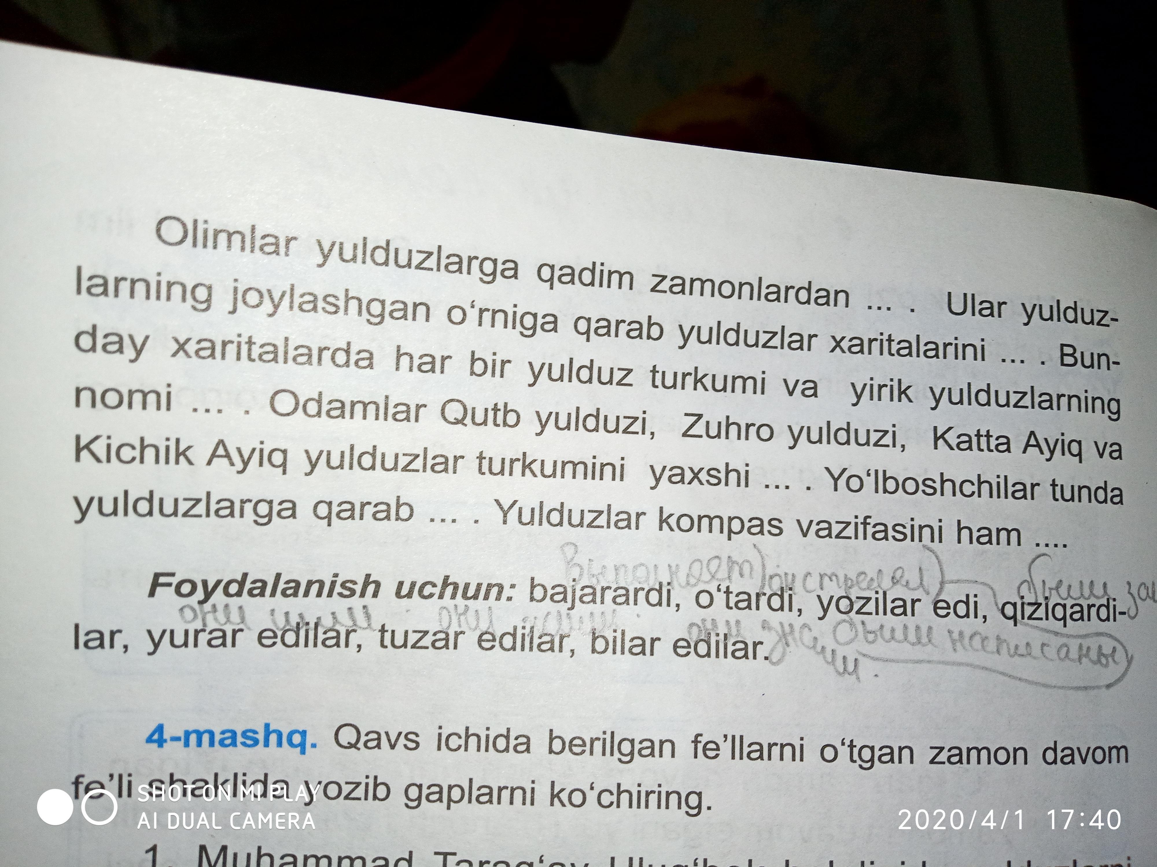1 Qiziqadilar 2 Tuzar edilar 3 Yozilar edi 4 Bilar edilar 5Yurar edilar 6 Bajarardi
