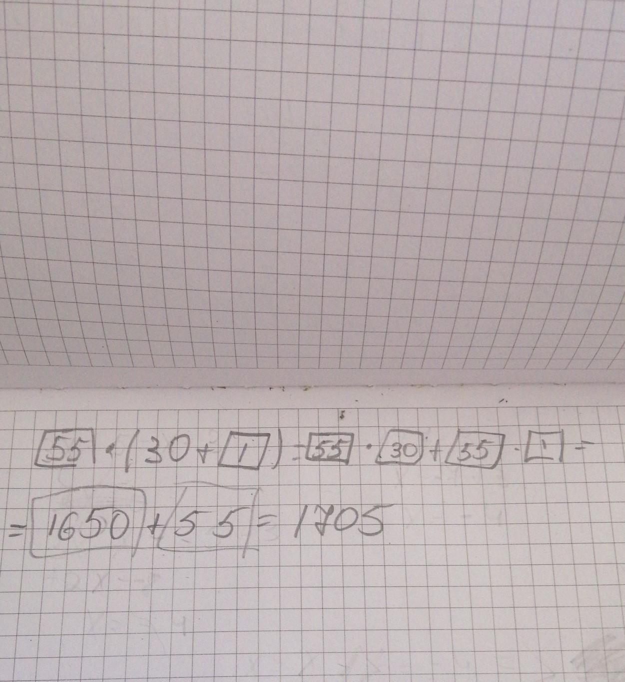 55*31=55*(30+1)=55*30+55*1=1650+55=1705