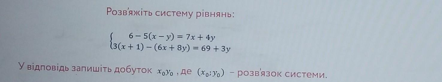 У відповідь запишіть добуток хоУо , де (хо; У%) - розв'язок системи.