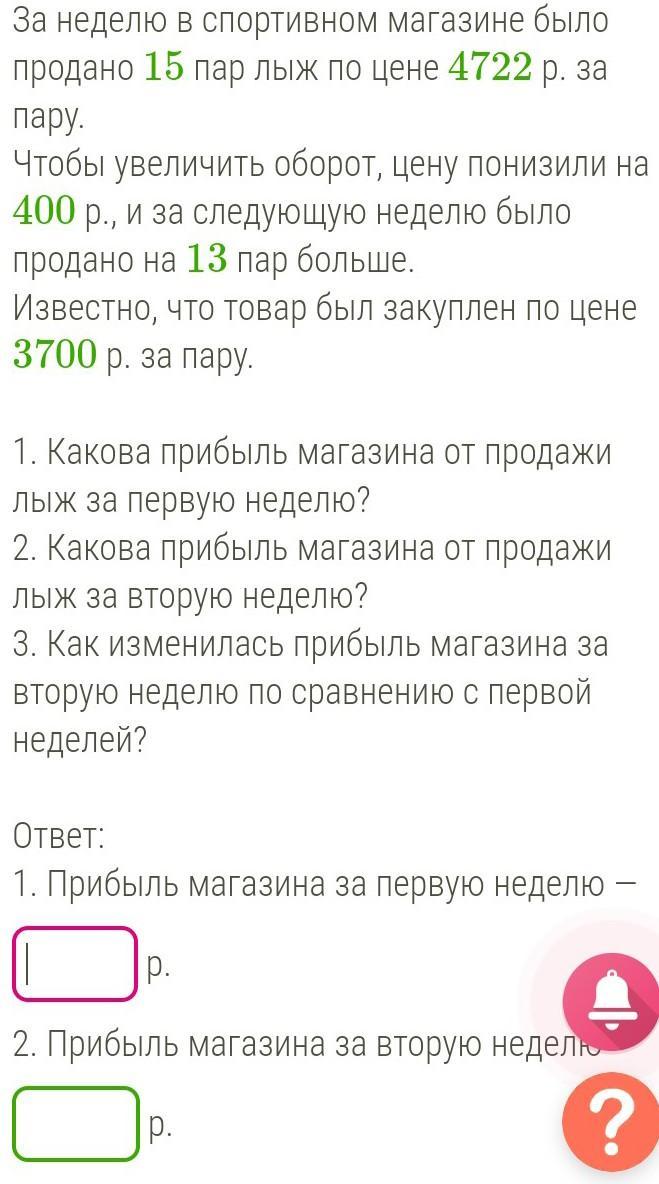 Ответ: 1.прибыль магазина за 1-ю неделю - 15030 рублей