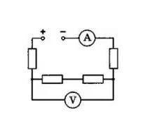 На рисунку зображено схему електричного кола, у якому опір кожного резистора становить 2 Ом. Амперметр показує силу струму 0,5 А, а вольтметр — напругу, що дорівнює
