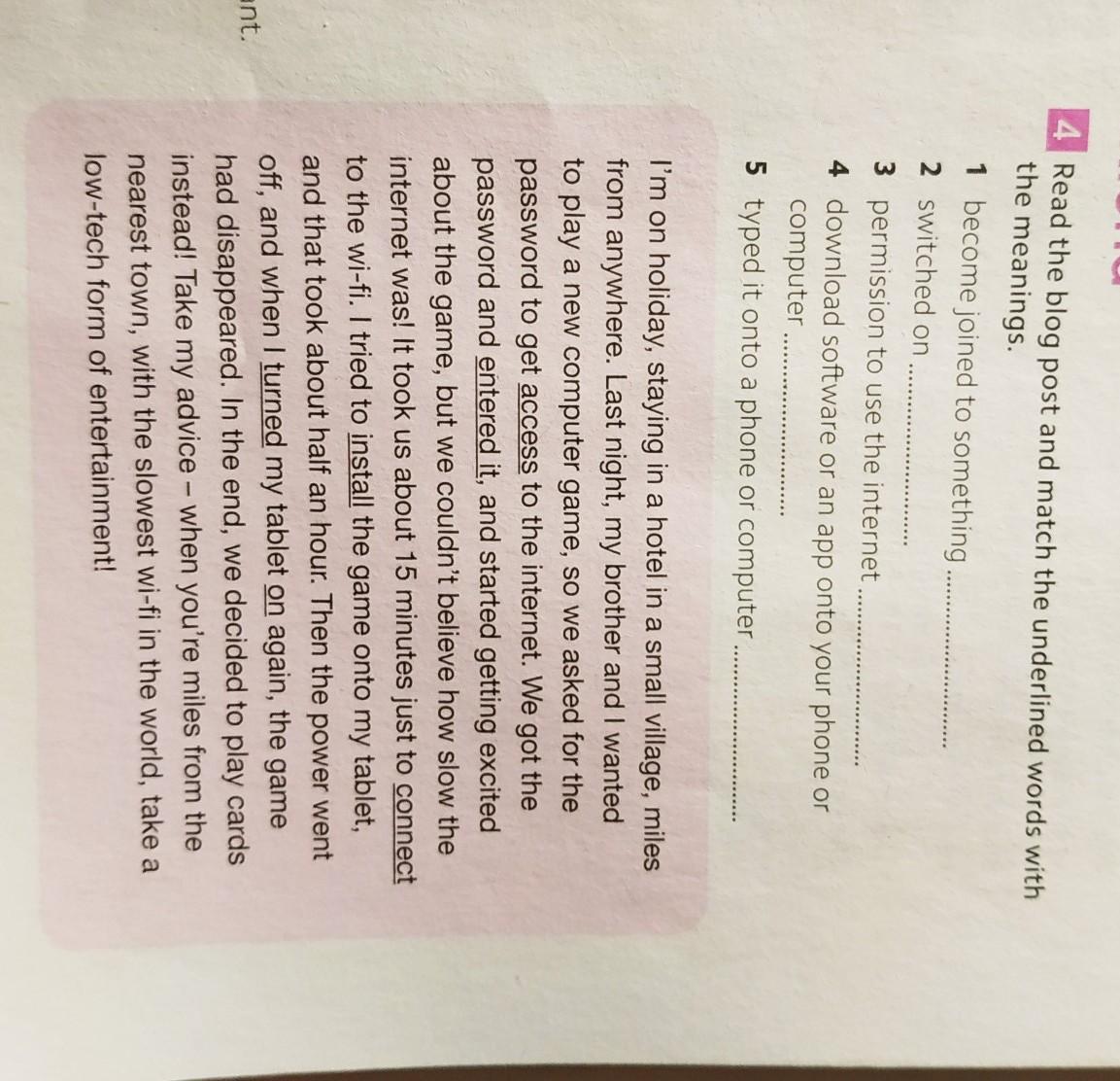 Ответ: 1) connect, 2) turned on, 3) access, 4) install, 5) entered it