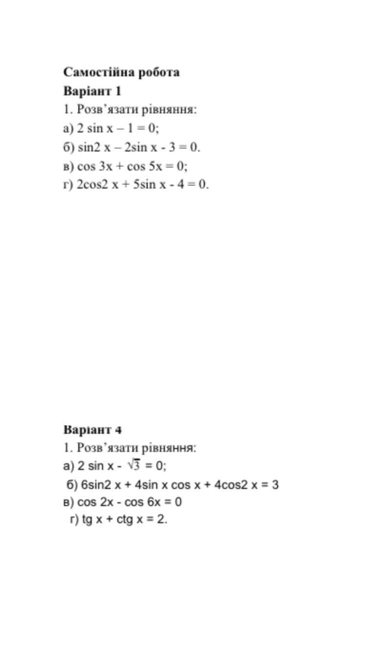 a/ 2sin 2 x-1=0 б. sin 2 x - 2 sin x -3=0 в. cos3x+ cos 5x=0
