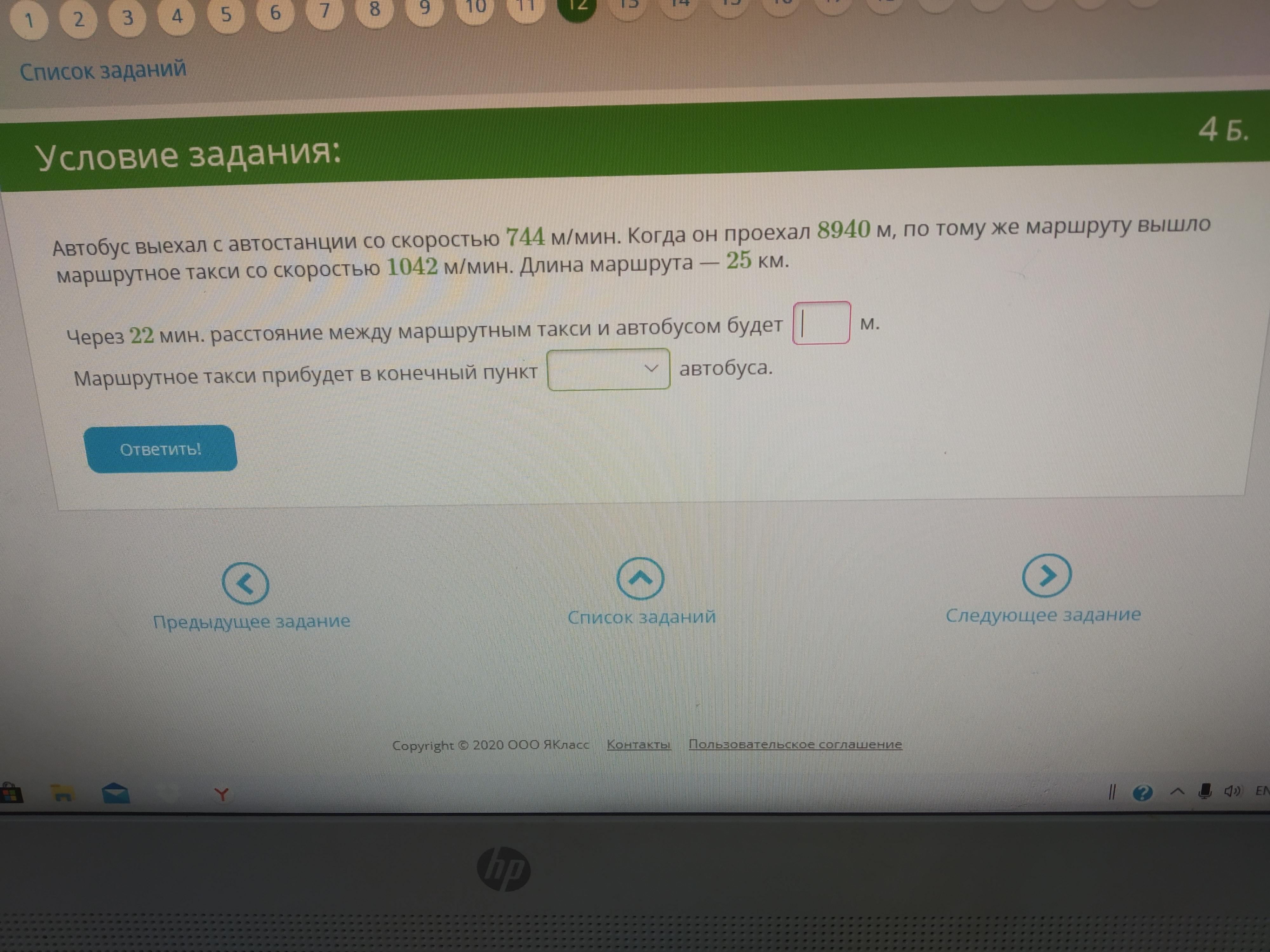 1)744×22=16368(м) проехал автобус за 22 мин.
