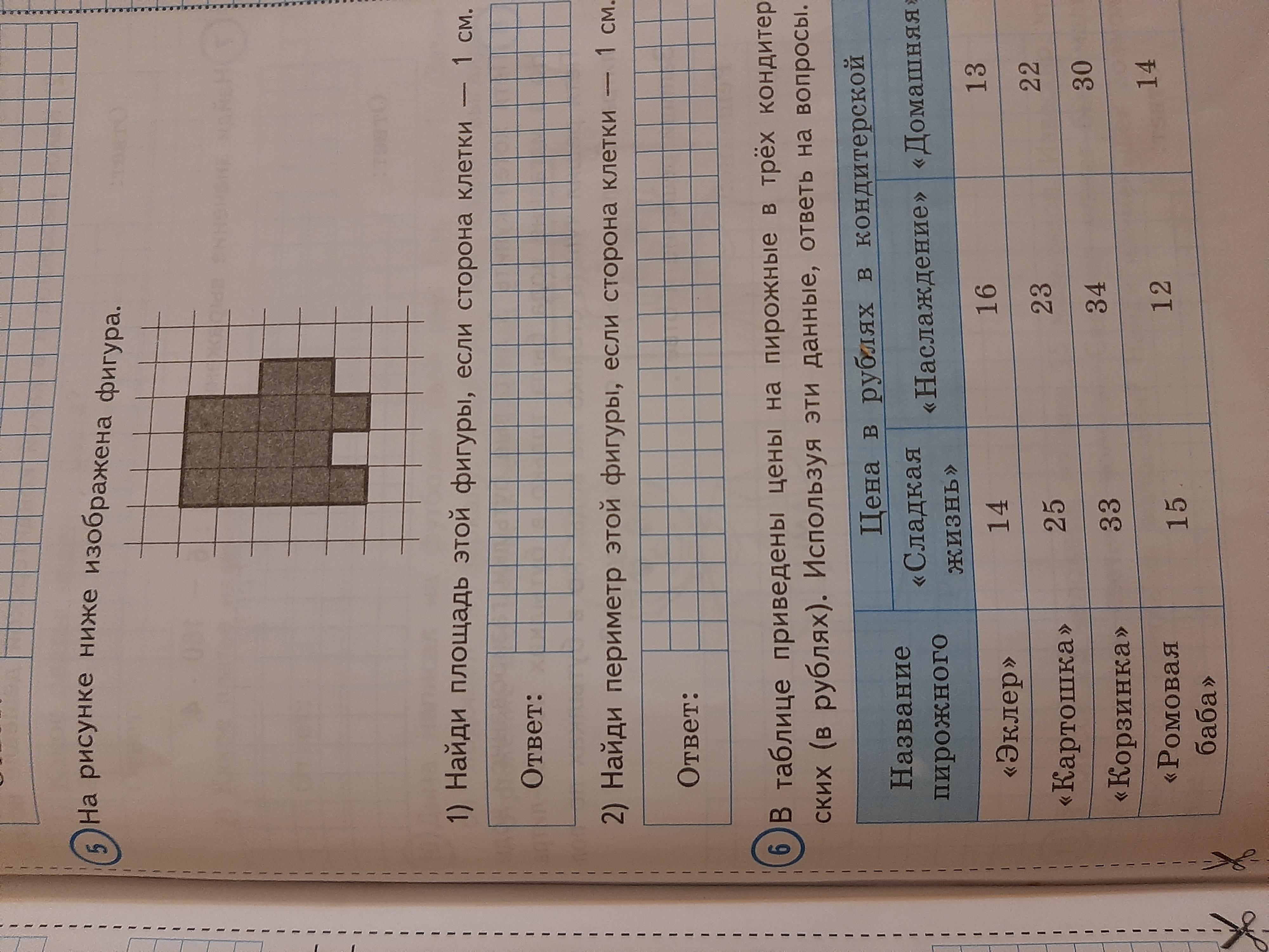 1) Надо просто посчитать у многоугольной фигуры сколько клеток.( у квадрата, прямоугольника и т.д. не надо считать, а просто пользоваться формулой)