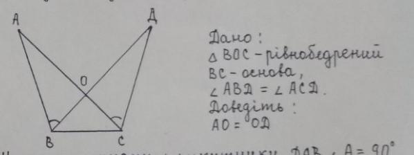 треугольник АВС подобен треугольнику ДВС по 2 сторонам. Вс- общая, ОВ=ОС⇒ Треугольники равны