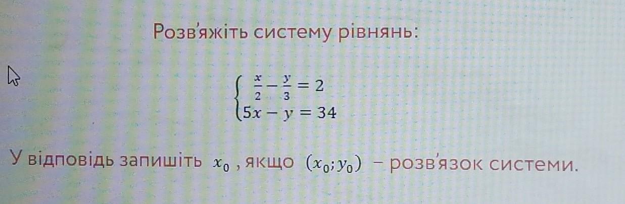 Приведем к общему знаменателю первую дробь. умножим вторую на минус два и сложим с первой. получим3х-2у=12