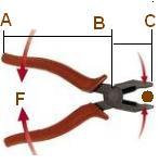 Плоскогубцы образуют 2 одинаковых рычага. Рычаг плеча AB в 7 раз длиннее плеча BC. С какой силой плоскогубцы надавливают на мяч,если к ручкам приложенная сила F является 6,8 N?