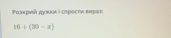 16 + ( 30 - х ) = 16 + 30 - х = 46 - х