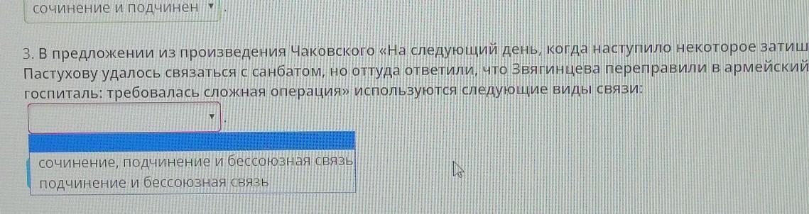 госпиталь: требовалась сложная операция» используются следующие виды связи: