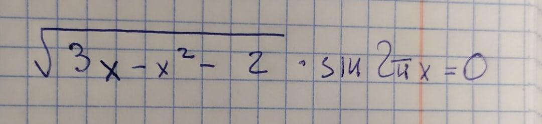 Пошаговое объяснение:1) Сначала найдём ОДЗ: подкореноое выражение должно быть неотрицательно, т.е. 3х - х² - 2 ≥ 0 ⇔ х²-3х + 2 ≤ 0. Через дискриминант Д = 9 - 8=1 или по т. Виета х₁=1, х₂=2; функция у=х²-3х + 2 ≤ 0 на [1; 2] ОДЗ: х∈ [1; 2] 2) Уравнение представляет из себя произведение двух множителей, оно равно нулю, если хотя бы один из множителей равен нулю, т.е. √(3х-х²-2) =0 или Sin 2πх=0 ⇒ а) 3х-х²-2 =0 х₁=1, х₂=2 б) 2πх=nπ, где n∈Z, х₃= nπ/(2π)=n/2, n∈Z 3) Корни х₁=1, х₂=2 удовлетворяют ОДЗ, х₃=n/2 удовлетворяет ОДЗ, если n=2; 3;4.