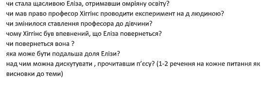 Зарубіжна література. Пігмаліон. Еліза Дулітл. Помогите ответить на вопросы (50 баллов)