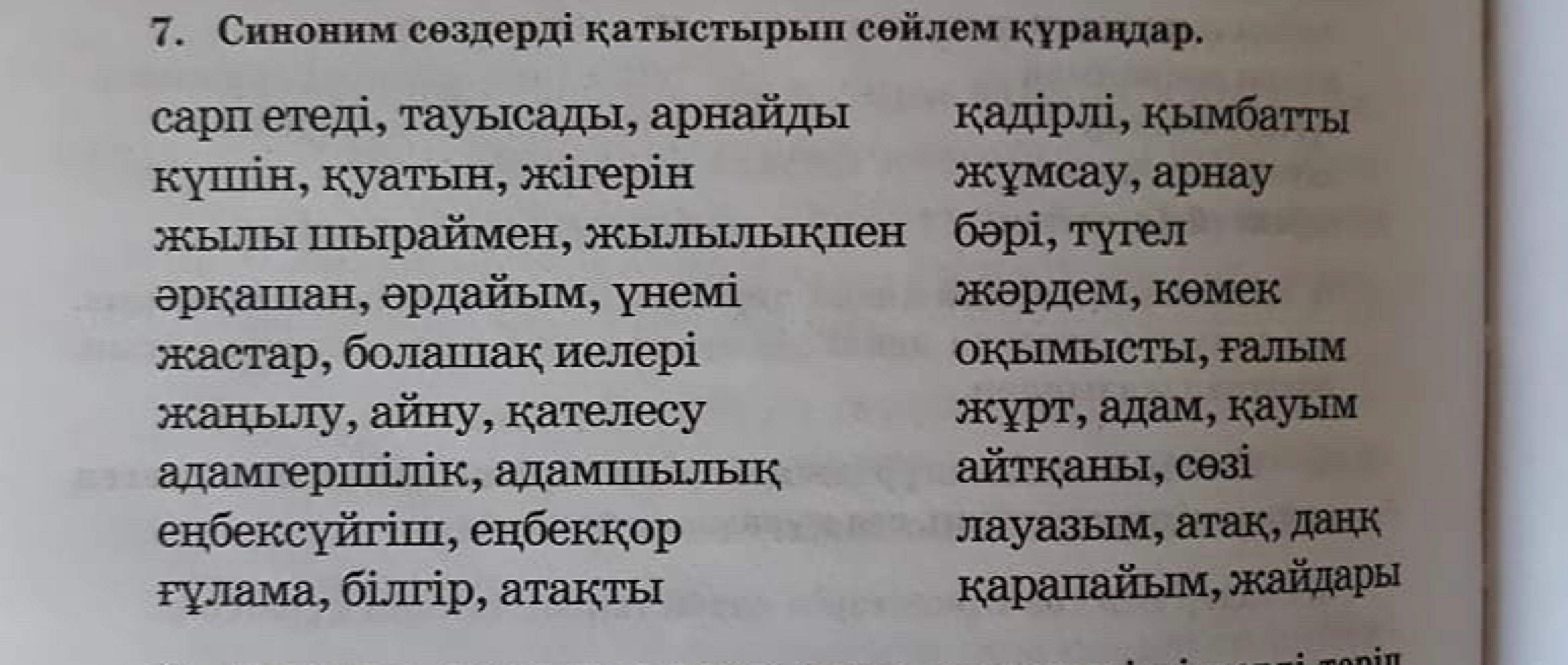 7 жаттығудағы синоним сөздермен Қ.Сәтбаев туралы текст жазу. (Используя нужные синонимы написать текст о Сәтбаеве)