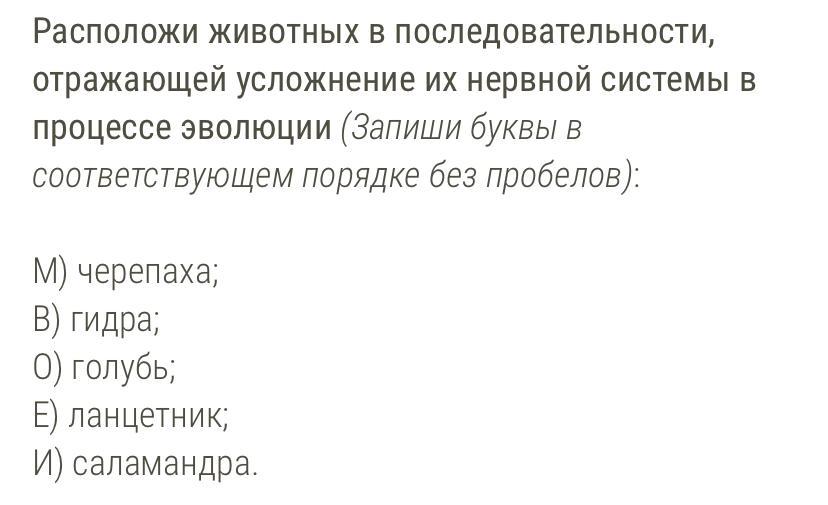 Расположи животных в последовательности, отражающей усложнение из нервной системы в процессе эволюции