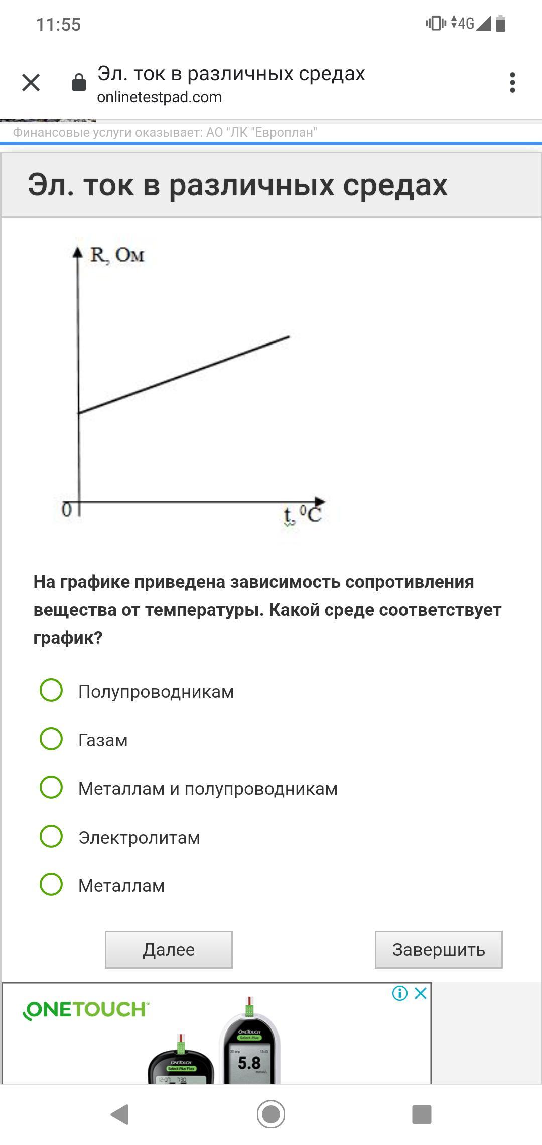 На картинке показана зависимость сопротивления металлического проводника от температуры.