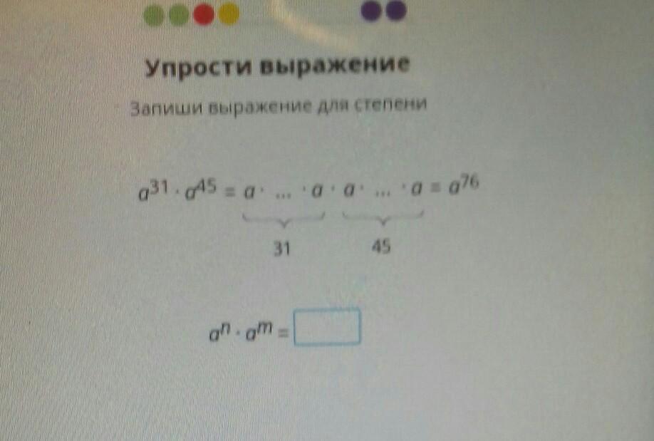 Ответ: а^n * a^m = a^n+m