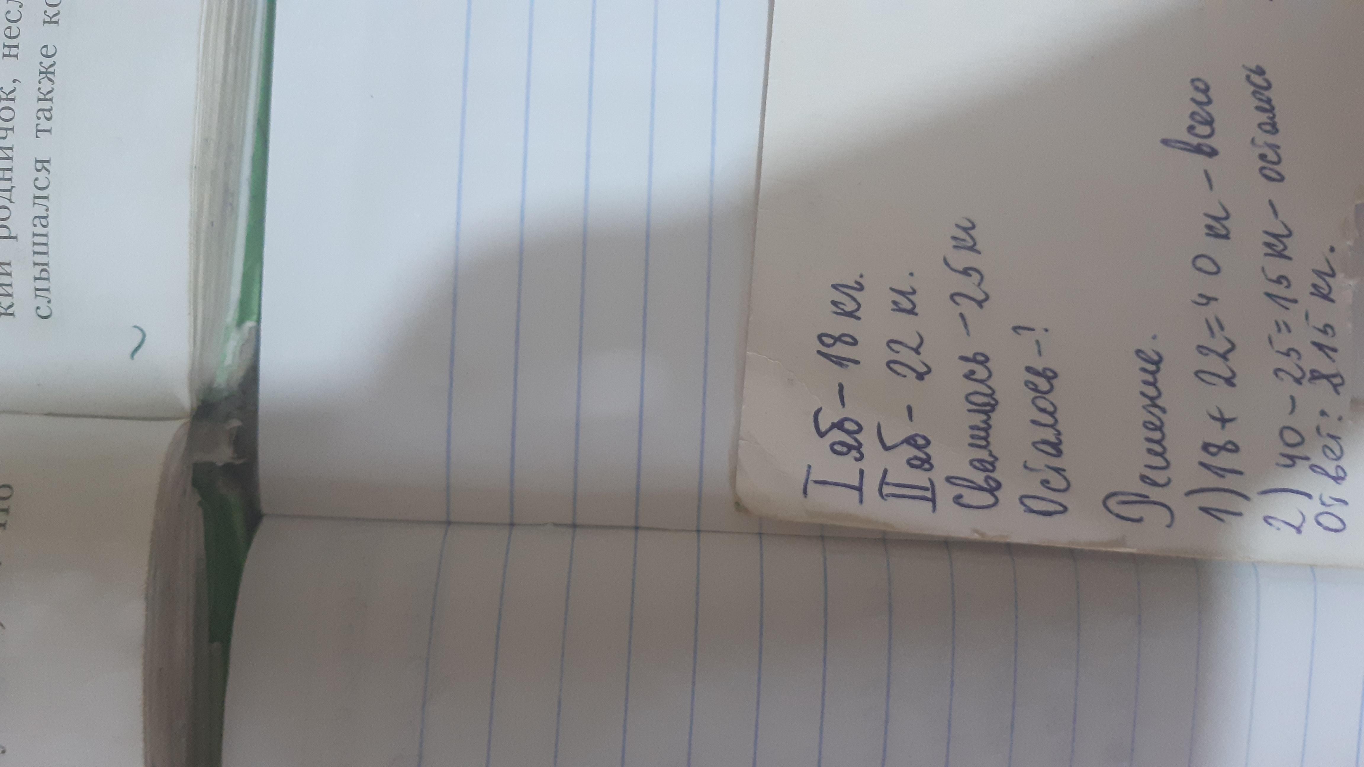 2)40-25=15кг-осталось