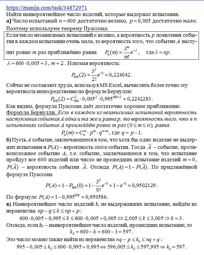 Найти наивероятнейшее число изделий, которые выдержат испытания