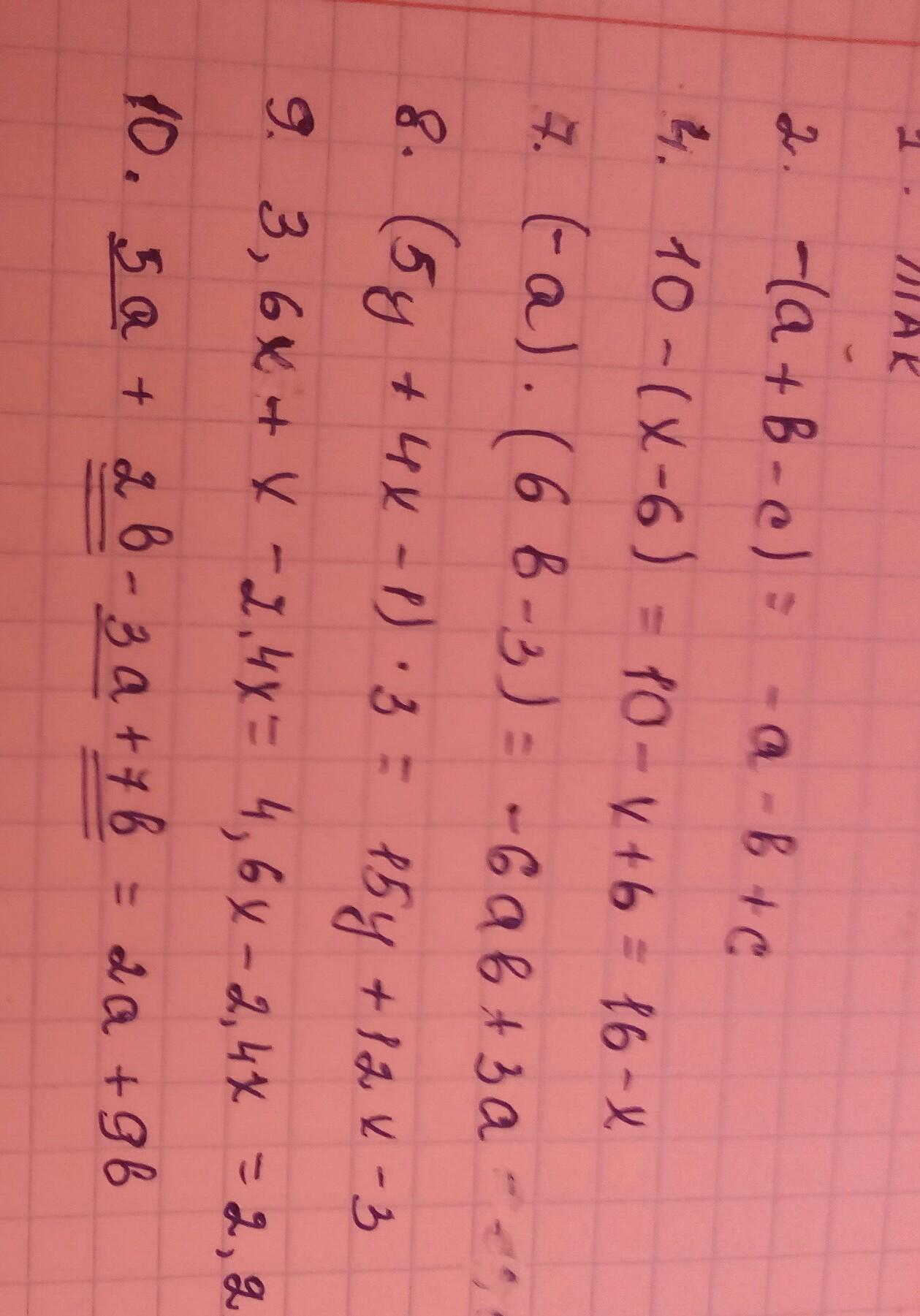 2| Раскрыть скобки в выражении: -(a+b-c)