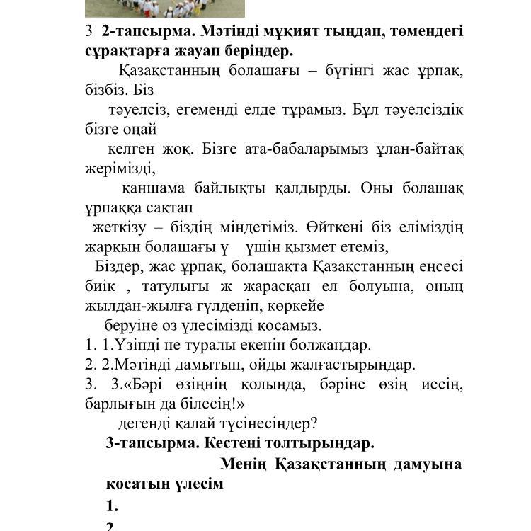 1. Үзінді тәуелсіздік туралы. Қазақстанның болашағыжас ұрпақтың қолында. Ұлан-байтақ жерімізді, байлығымызды қорғау және сақтап, келесі ұрпаққа жеткізу, біздің қолымызда.