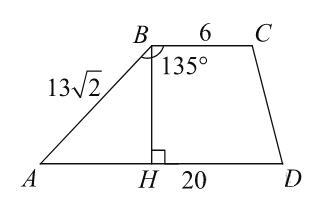 Объяснение: Весь угл В равен 135°, угл HBC равен BHD, равен 90°. Тогда угл ABH = 135-90= 45. Тогда BAH равно тоже 45, то этот триугольник раанобедренный. АВ = АН = 13 корень из 2.