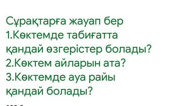 3. көктемде жылына бастайды, қатты суық болмайды, аздап салқындайды, қардың орнына жаңбыр жауады.