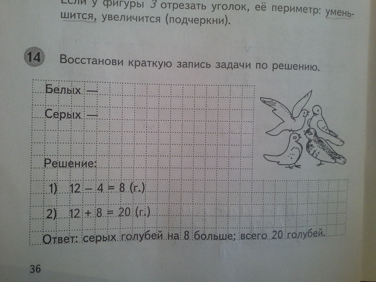 ответ: серых голубей на 8 больше; всего 20 голубей.
