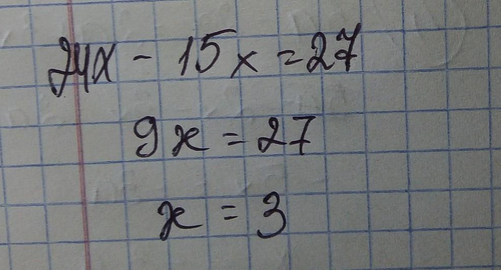мама заготовила на зиму компот в одинаковых банках. получилось 24 банки вишневого и 15 банок сливового компота.какова емкость каждой банки если вишневого компота на 27л больше чем сливового?