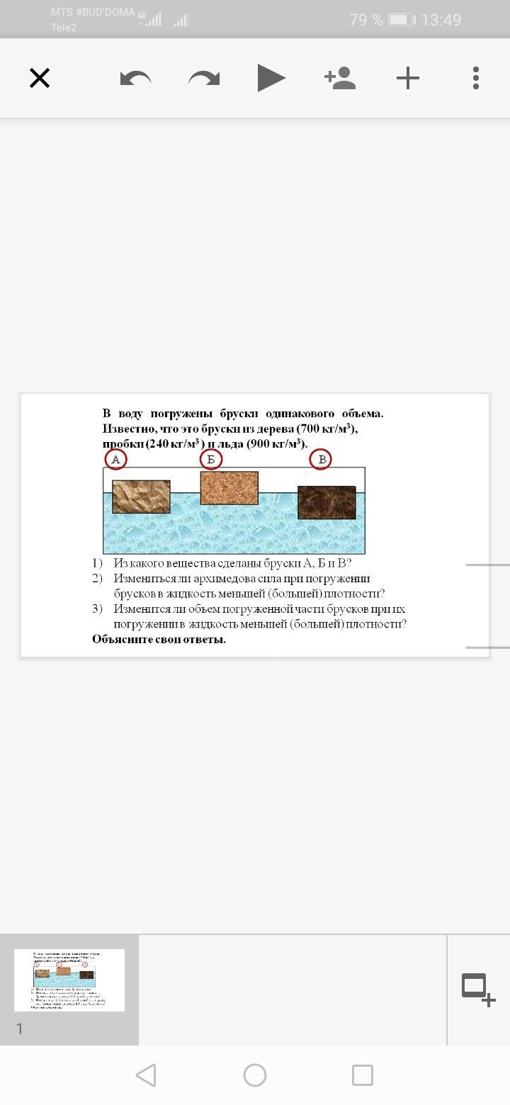 1) Брусок А - дерево,