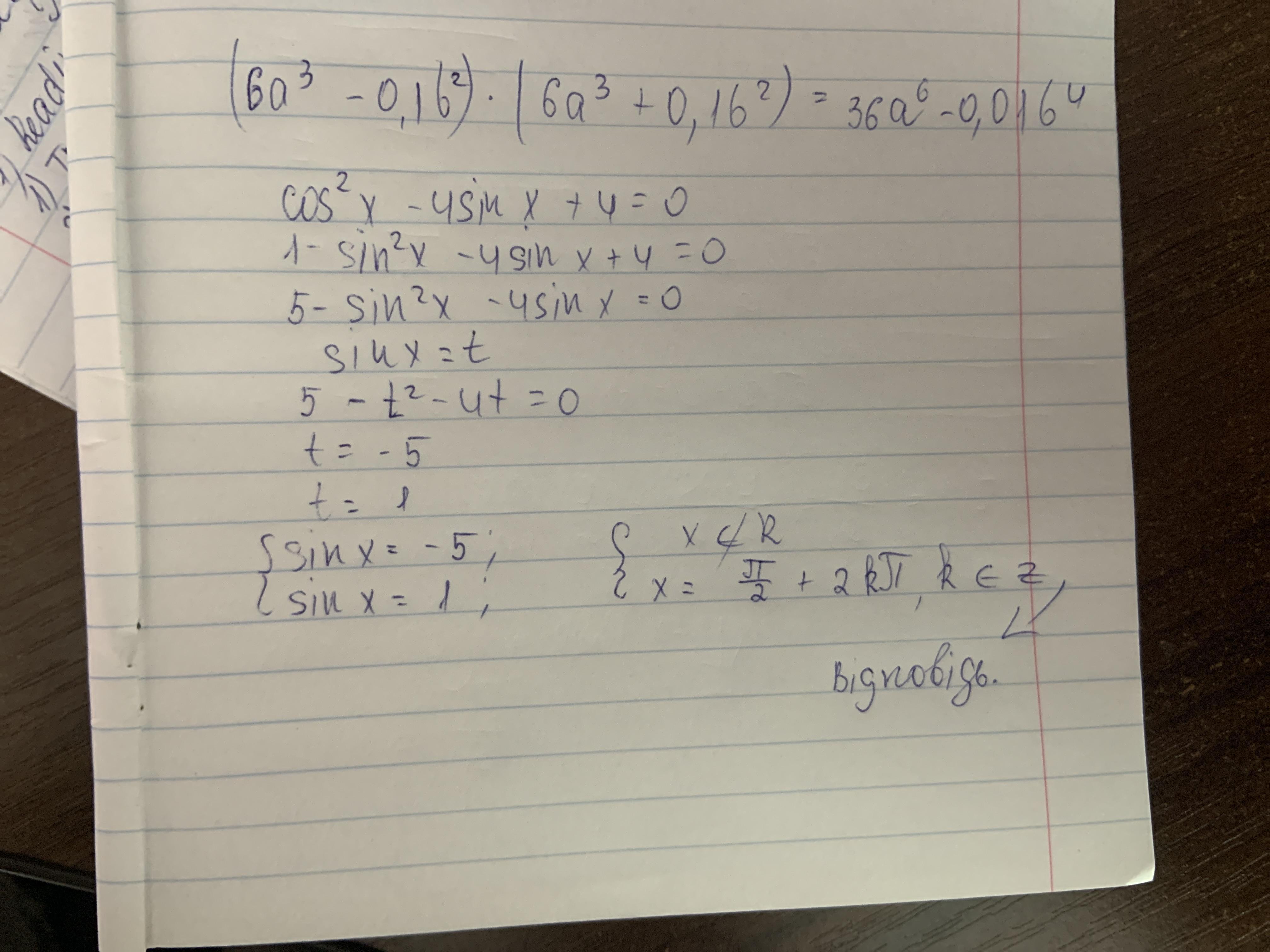 1-sin^2x-4sinx+4=0, sin^2x+4sinx-5=0 sinx=-5(не подходит)