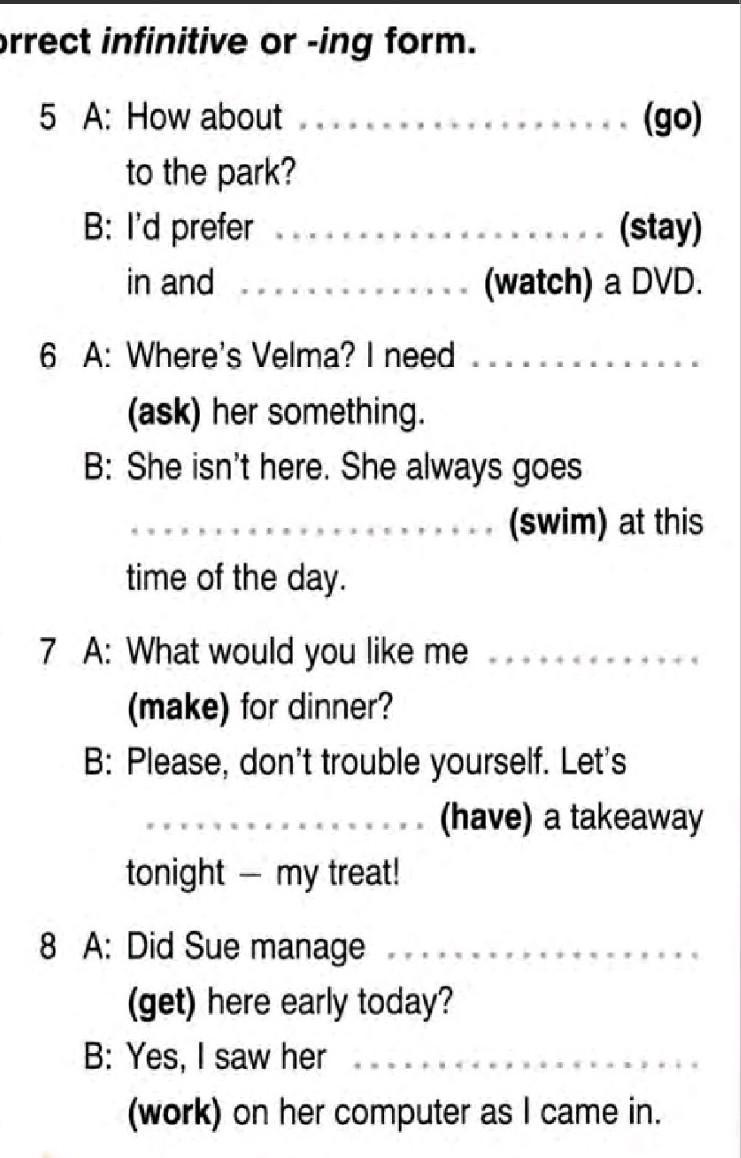 Put the verbs in brackets into the correct infinitive or -ing form. Помогите пожалуйста . СРОЧНО