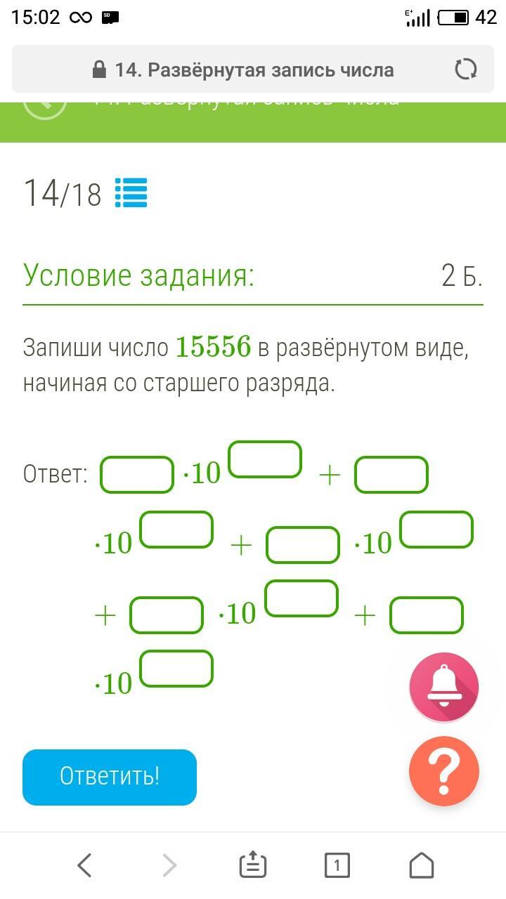 .Запиши число 15556 в развёрнутом виде, начиная со старшего разряда.