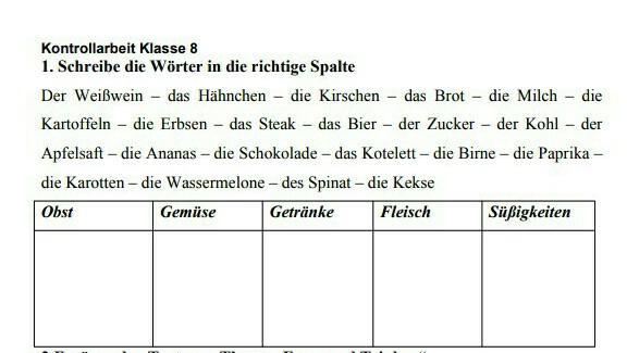 Gemüse : die Kartoffeln, die Erbsen, der Kohl , die Paprika, die Karotten, das Spinat