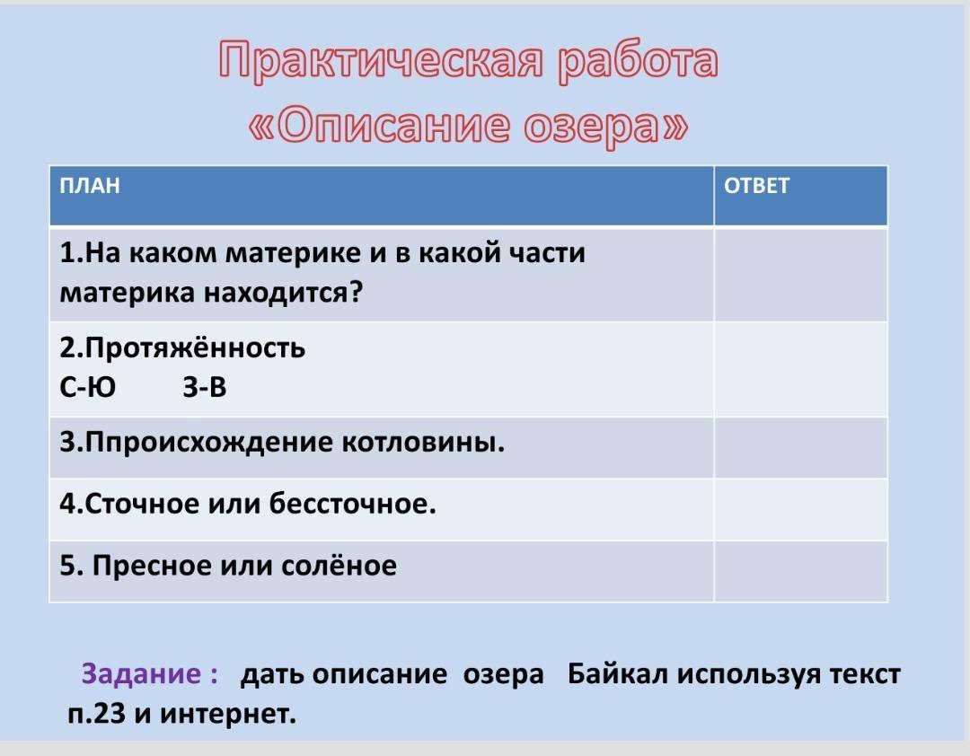 3 ОЗЕРО БАЙКАЛ ТЕКТОНИЧЕСКОЕ ПРОИСХОЖДЕНИЕ расположенное в гребне. (.Горные районы юга Сибири) Это обычно самые глубокие озера, образованные на месте провалов земной коры