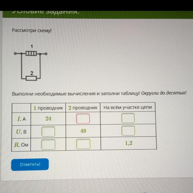 Iвсей цепи=Uвсей цепи/Rвсей цепи=48/1.2=40 А