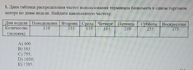 1. Дана таблица распределения частот использования терминала банкомата в одном торговом
