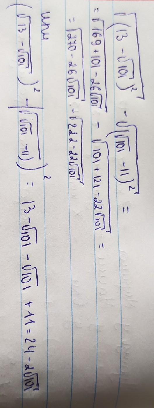 √(13-√101)²(все под одним корнем)-√(√101-11)²(все под одним корнем)=