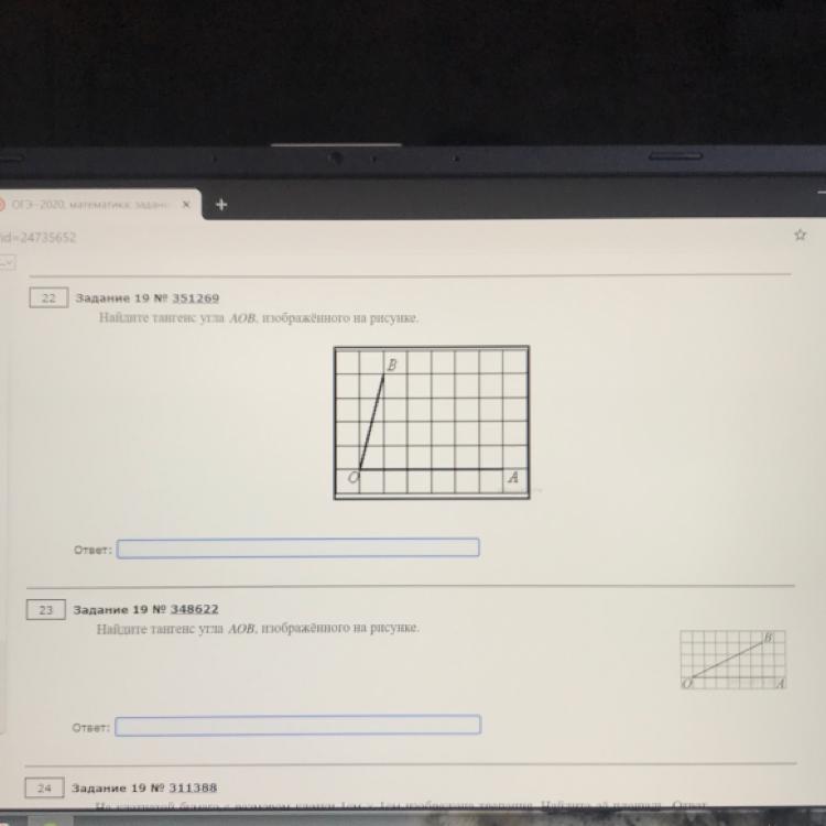 Ответ: Опустим перпендикуляр из точки B на прямую AO для получения прямоугольного треугольника. Тангенс угла в прямоугольном треугольнике — отношение противолежащего катета к прилежащему:
