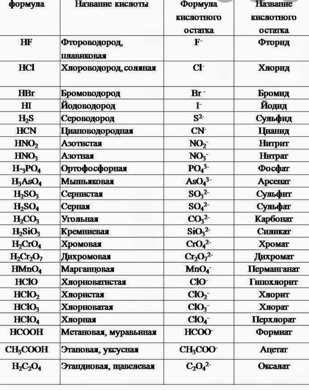Помогите составить возможные химические формулы кислот, оснований и солей.