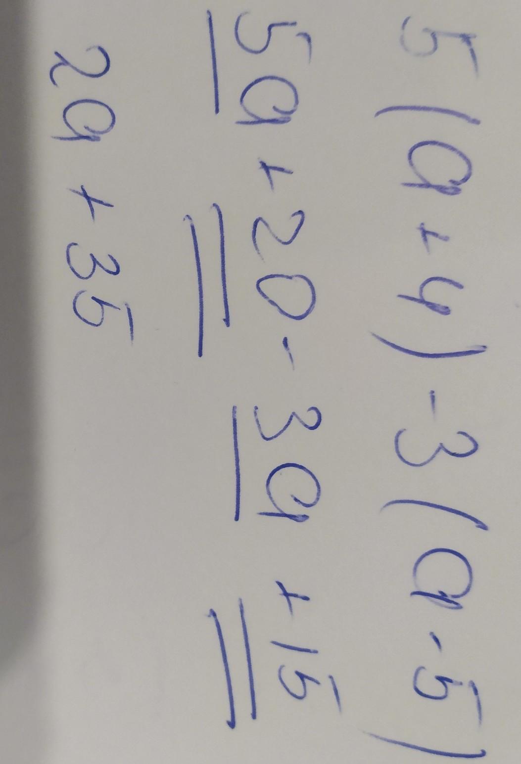 Пж кто знает дайте ответ: Розкрийте дужки та зведіть подібні доданки у виразі 5(а+4)-3(а-5).
