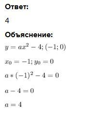 СРОЧНО ПОМОГИТЕ!!! Для якого значення а графік функції у = ах2 – 4 проходить через точку (– 1; 0).