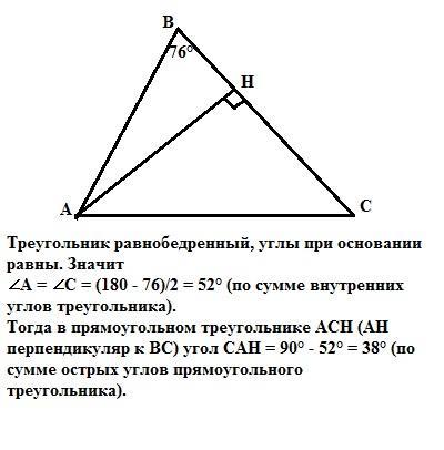 ведена высота AН. Найдите угол САН, если ZB = 76°.