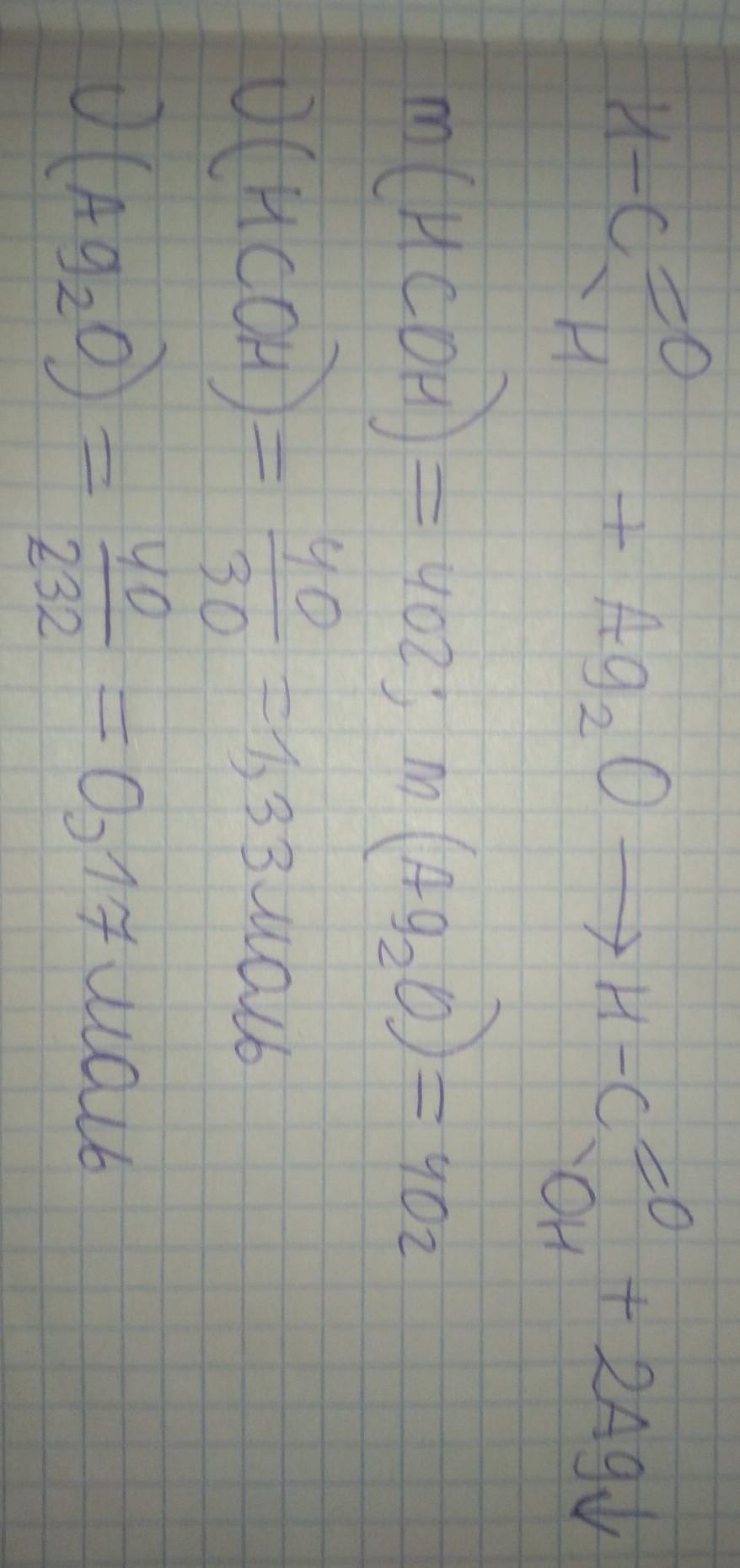 Какая масса серебра образуется при взаимодействии 40г формальдегида с 40г оксида серебра при нагревании?