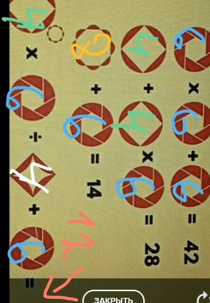 Сумма уголов фигурки (или частей из которых состоит круг) соответствует числу, которое предпологается вместо фигурки. В ответе получается число 12