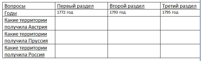 Какие территории получила Россия, Австрия и Пруссия при 1,2 и 3 разделах речи посполитой?